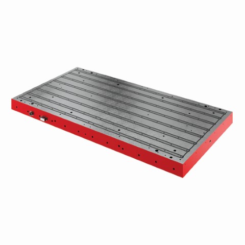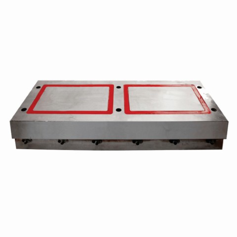 The electro-magnetic upper plate uses electric power to hold mould components in position during pressing. While cost-effective and efficient, it requires continuous electricity and can generate heat during operation. Proper care is necessary, as magnetic force may be affected during power outages.